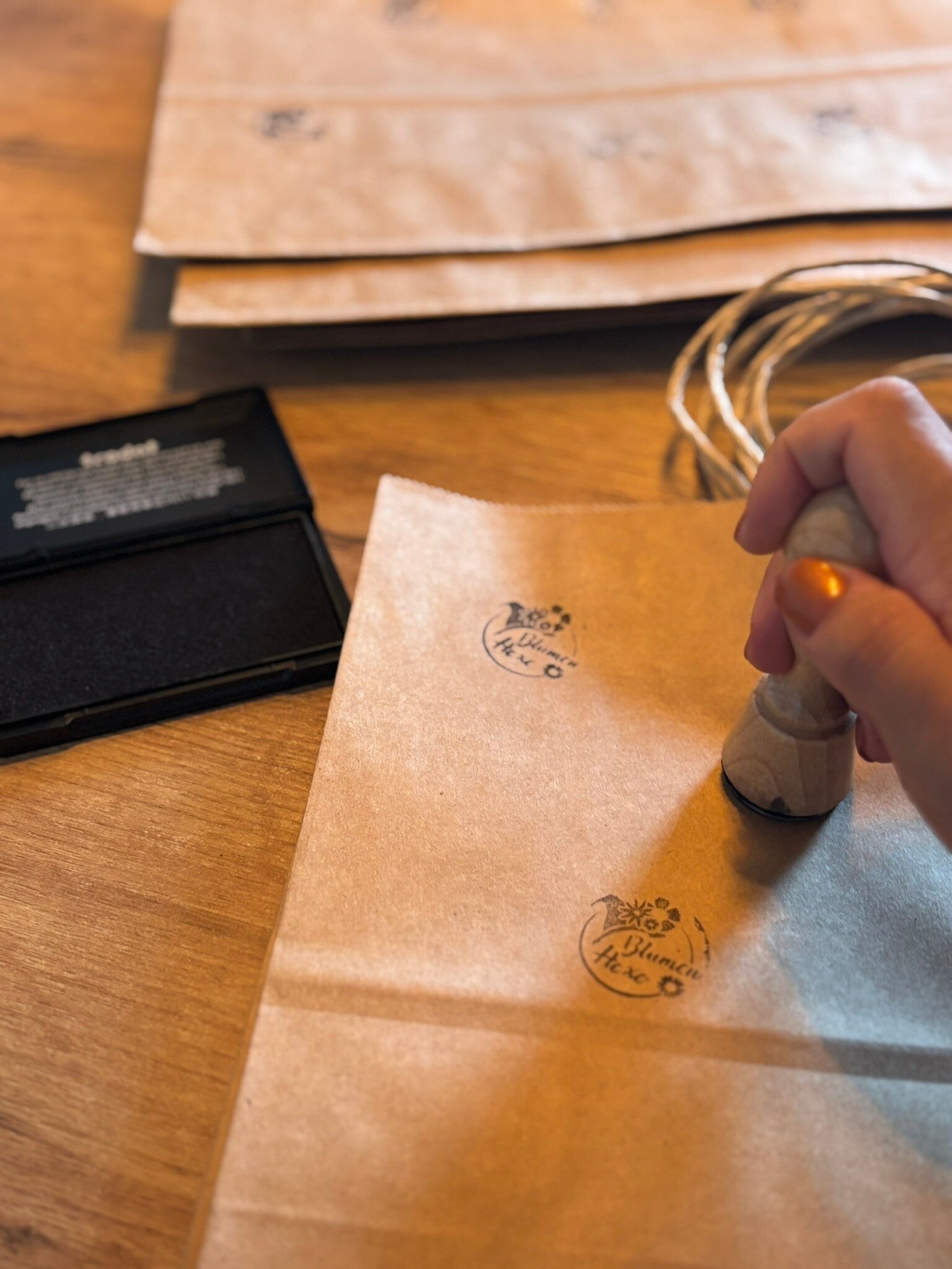 „Bei mir ist fast alles handgemacht – von den Produkten selbst bis zu den Details drumherum. Selbst meine Papiertaschen werden von mir liebevoll gestempelt, mit meinen Visitenkarten versehen und einem kleinen Dankestext inklusive QR-Code, damit ihr nichts auf meiner Instagram-Seite verpasst.“